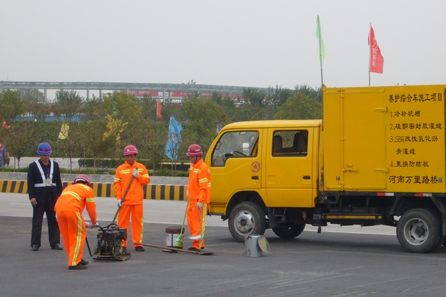10月17日至19日,由中国公路学会青年专家委员会主办,河南省公路学会、河南交通投资集团有限公司承办的中国公路学会青年专家委员会2009年年会暨全国公路科技青年论坛在郑州召开。 19日下午,年会与会代表在郑尧高速郑州南服务区观看高速公路养护技术观摩表演。我公司改性沥青灌缝、乳化沥青灌缝、冷补坑槽、硅酮耐候密封胶灌缝四项养护技术进行了施工演示,得到观摩现场一致好评。