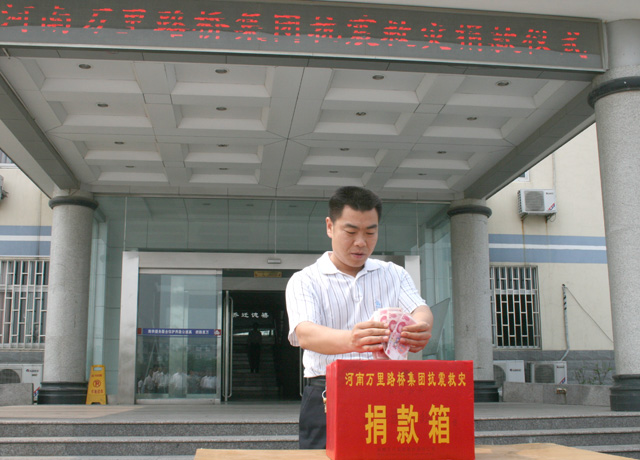四川汶川发生的8.0级强烈地震牵动着万里路桥集团全体员工的心,5月16日上午,公司举行抗震救灾捐款活动,以实际行动向灾区人民伸援手、献爱心。 据统计,此次公司共计捐款3万余元,分布各地的项目部捐款也在陆续汇往公司。这笔款项将由集团公司转送灾区,支持四川的赈灾救灾工作。河南电视台对捐款活动进行了现场跟踪报道。
