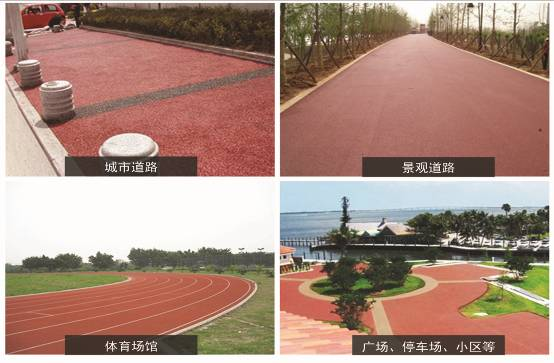 采用彩色沥青铺筑步行街、景观路、广场、庭苑、小区道路、园林的地坪,既美化环境,又突显自然情趣 。
